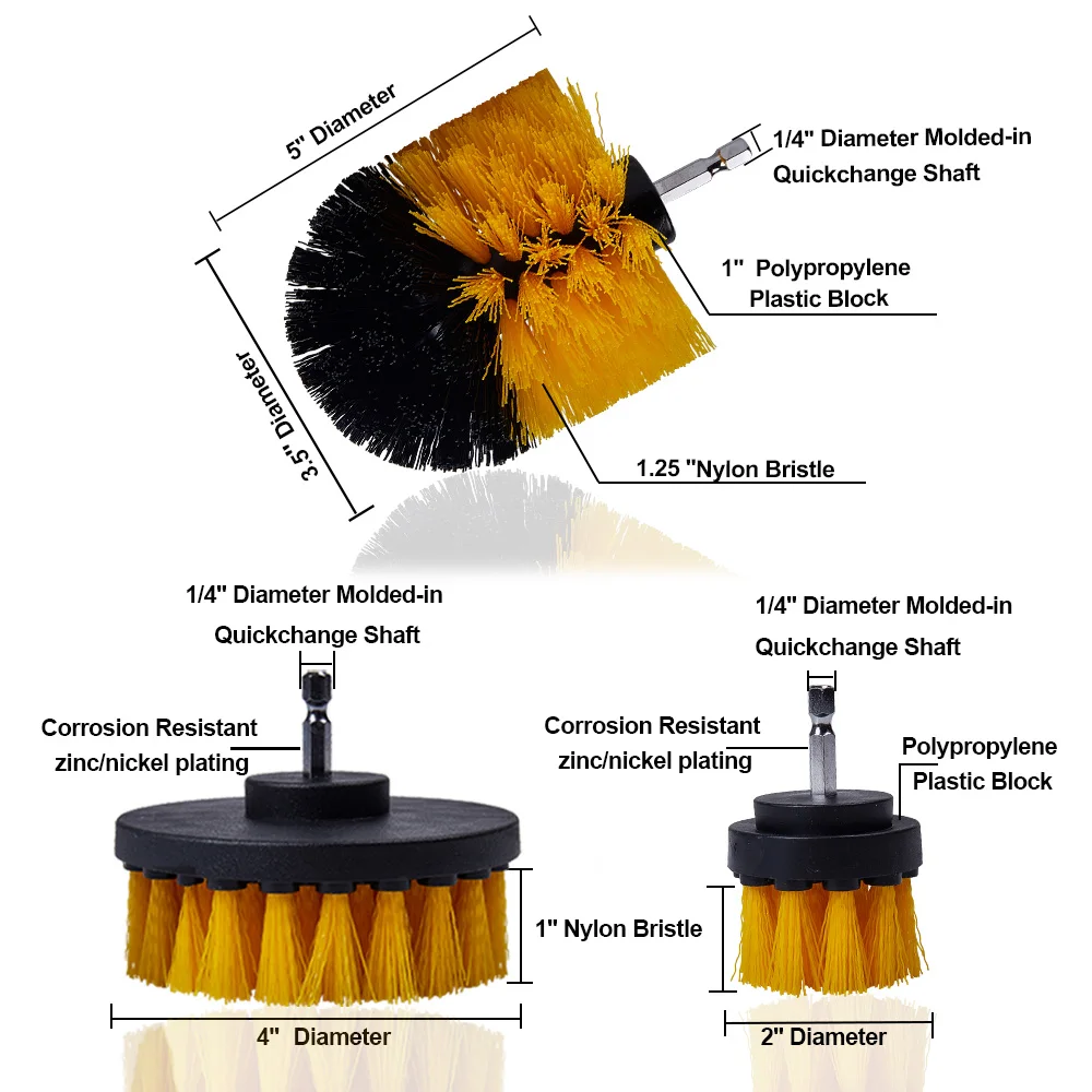 • Design da escova de broca com cerdas de náilon de rigidez média, não arranhará as superfícies do item.